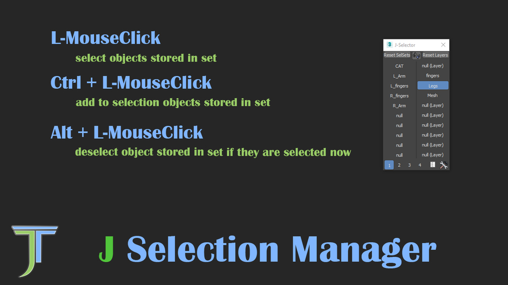 JSelectionManager designed for speed up your work by optimizing the selection of objects and hiding/showing groups of objects